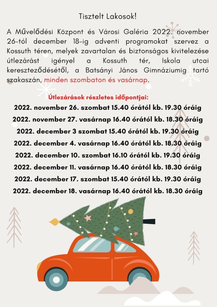 Advent – hétvégi útlezárások