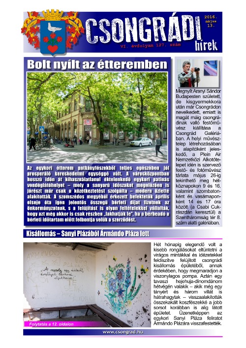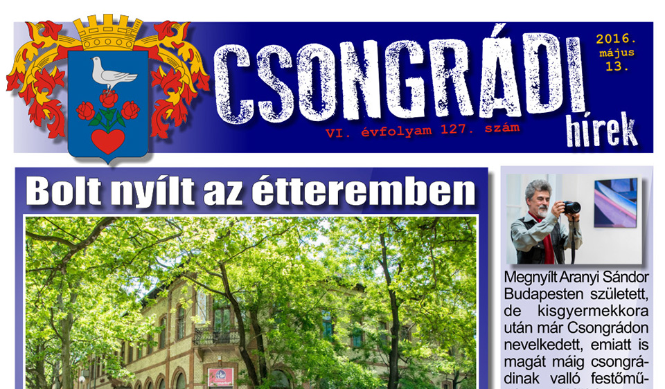 Letölthető a Csongrádi Hírek legújabb, május 13-án megjelenő (127.) száma 2016 máj. 11 | MEGTEKINTÉS Letöltés egyben (.zip)