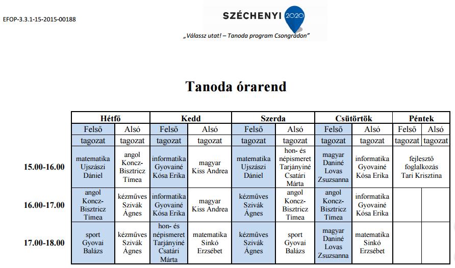 Tanoda órarend 2016/17