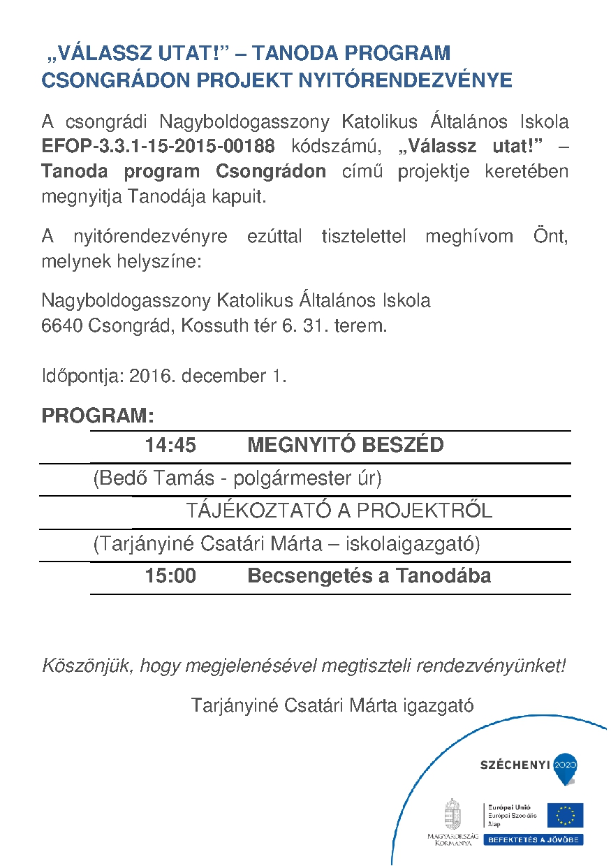 Meghívó - Tanoda megnyitó 2016