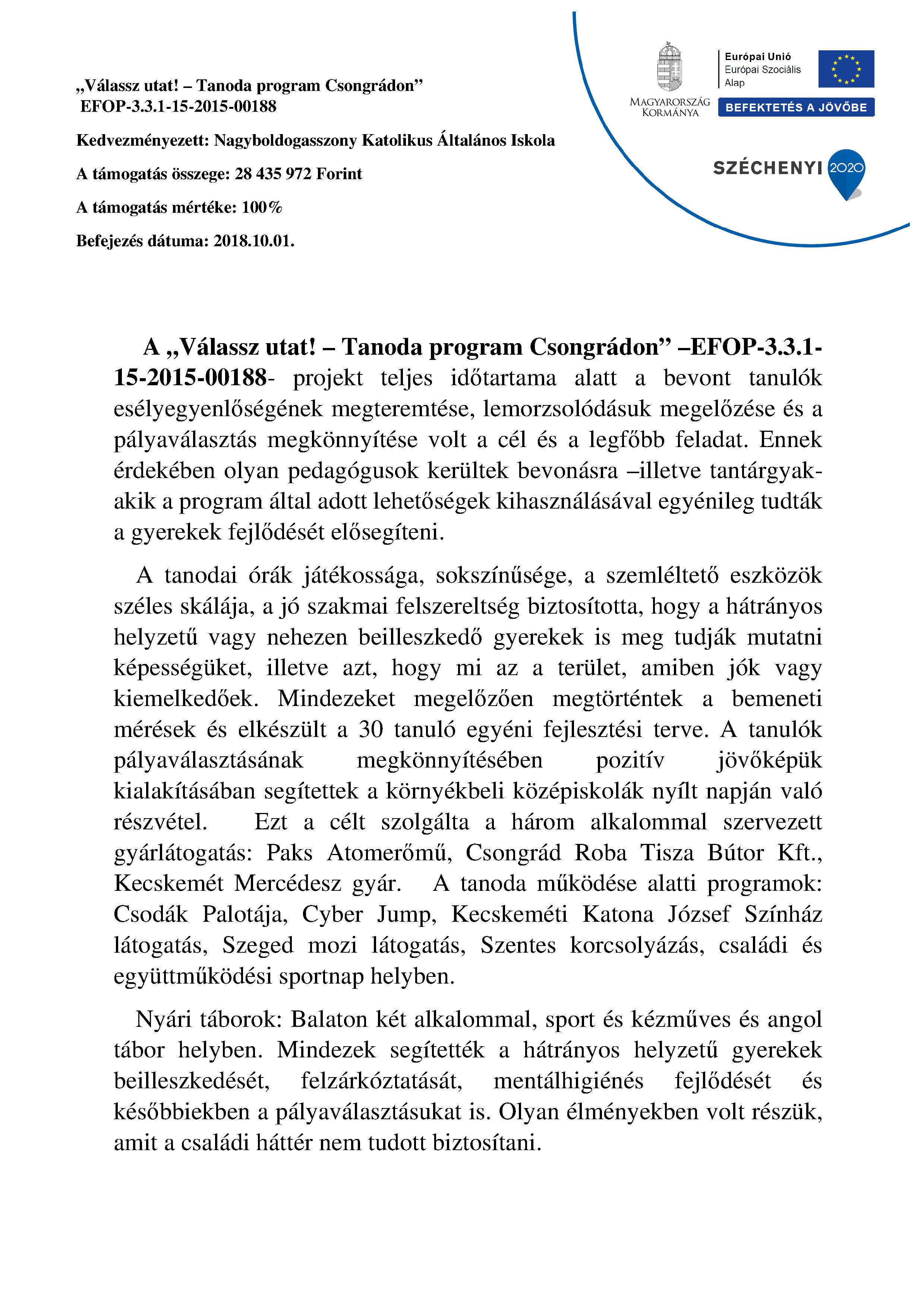Tanoda beszámoló