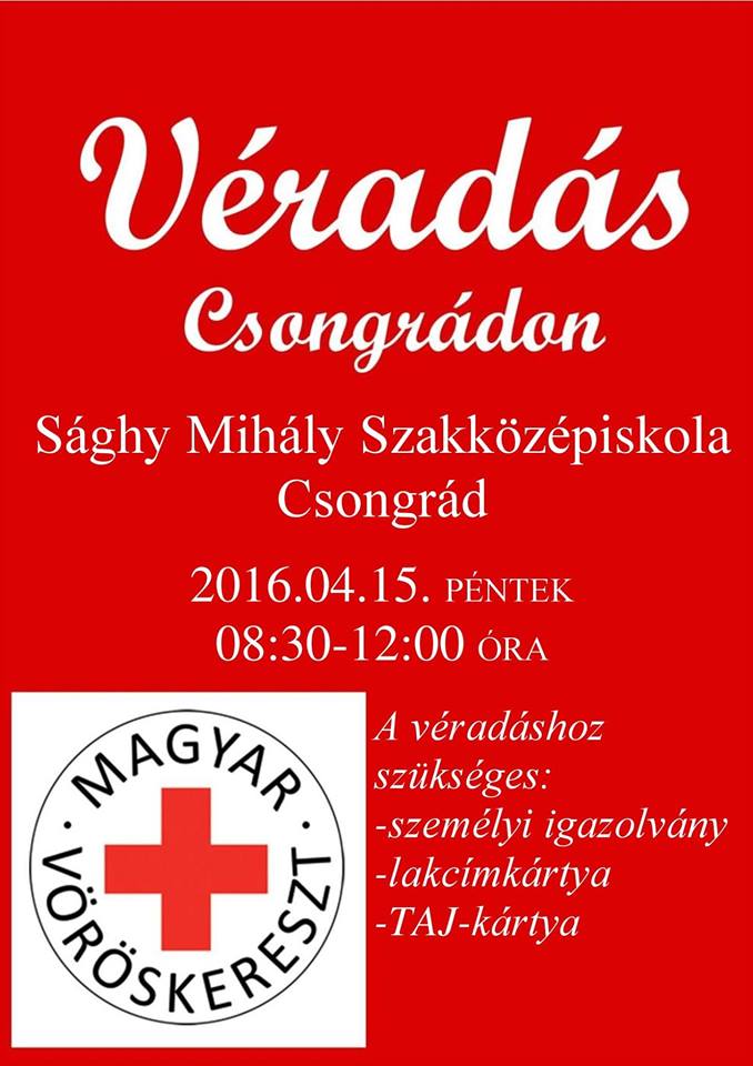 – 2016. 04. 15-én 08.30-12.00 óráig Csongrád, Sághy Mihály Szakképző Iskola